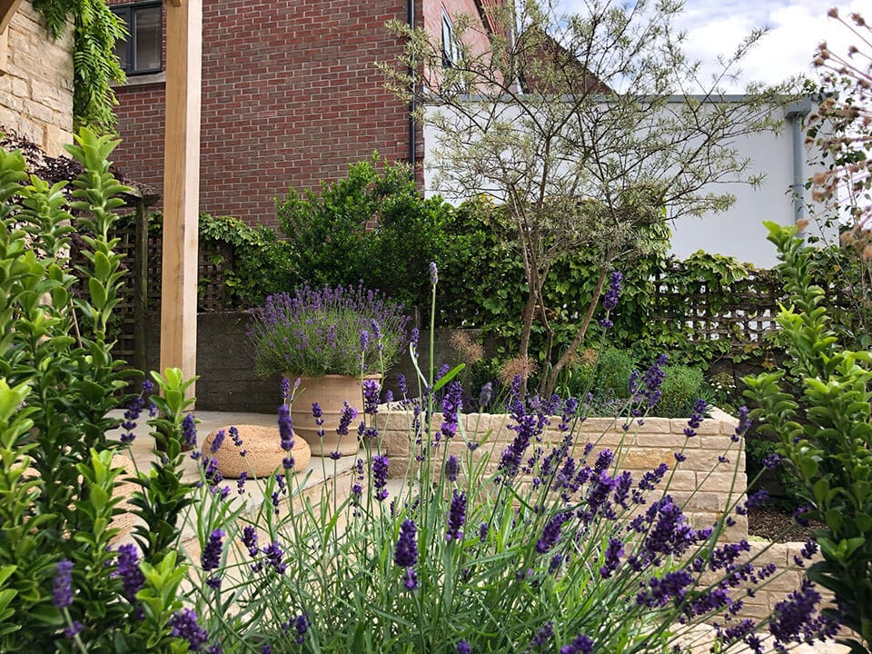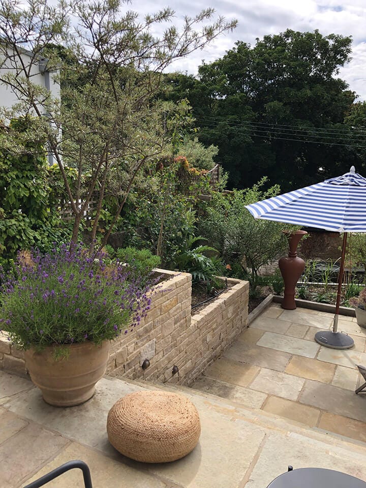 The harmonious planting is soft with a blue/green/white palette with plenty of movement and texture. Faily low maintenance the plants are happy to get on with it leaving my clients breathing space to enjoy this peaceful space.
