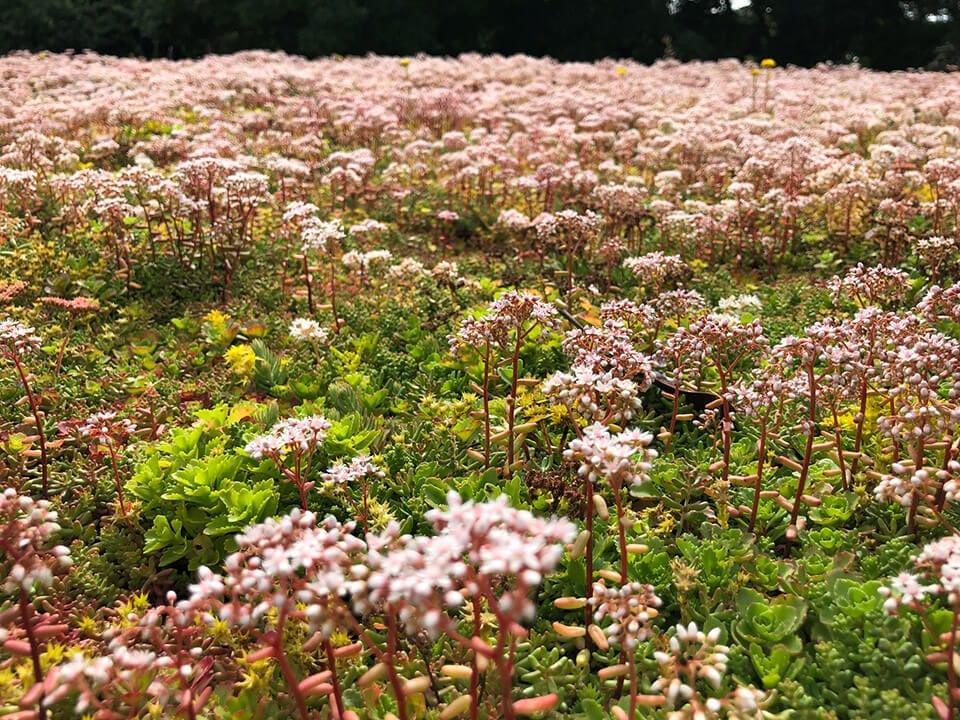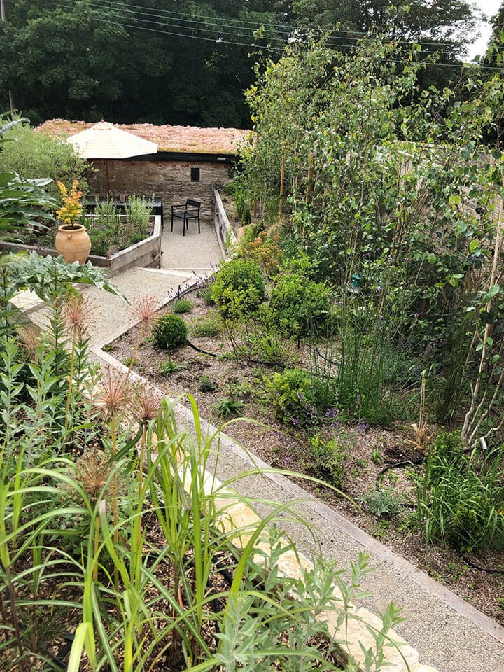 The garage has been roofed with sedum which provides and feast for insects and helps to blend this building into the countryside beyond.